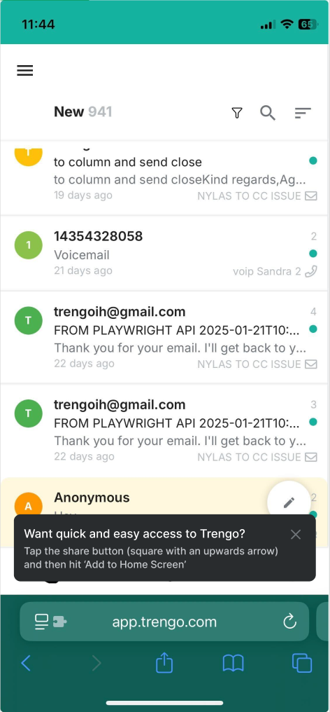 Once you’ve opened Trengo in mobile browser, you’ll receive a message asking you to add Trengo to your home screen.